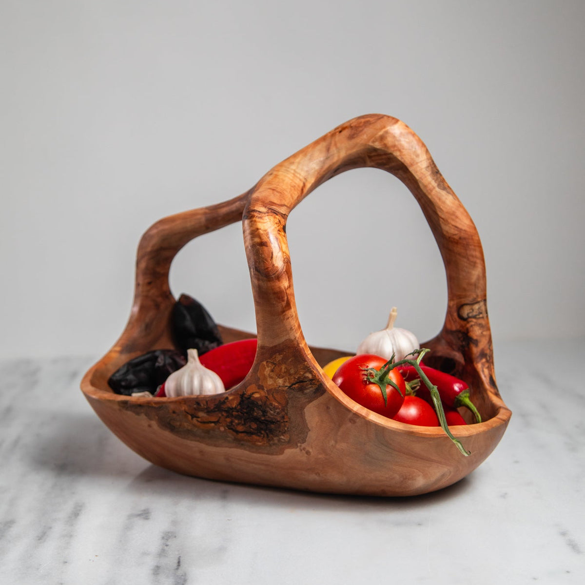 Olive wood fruit basket