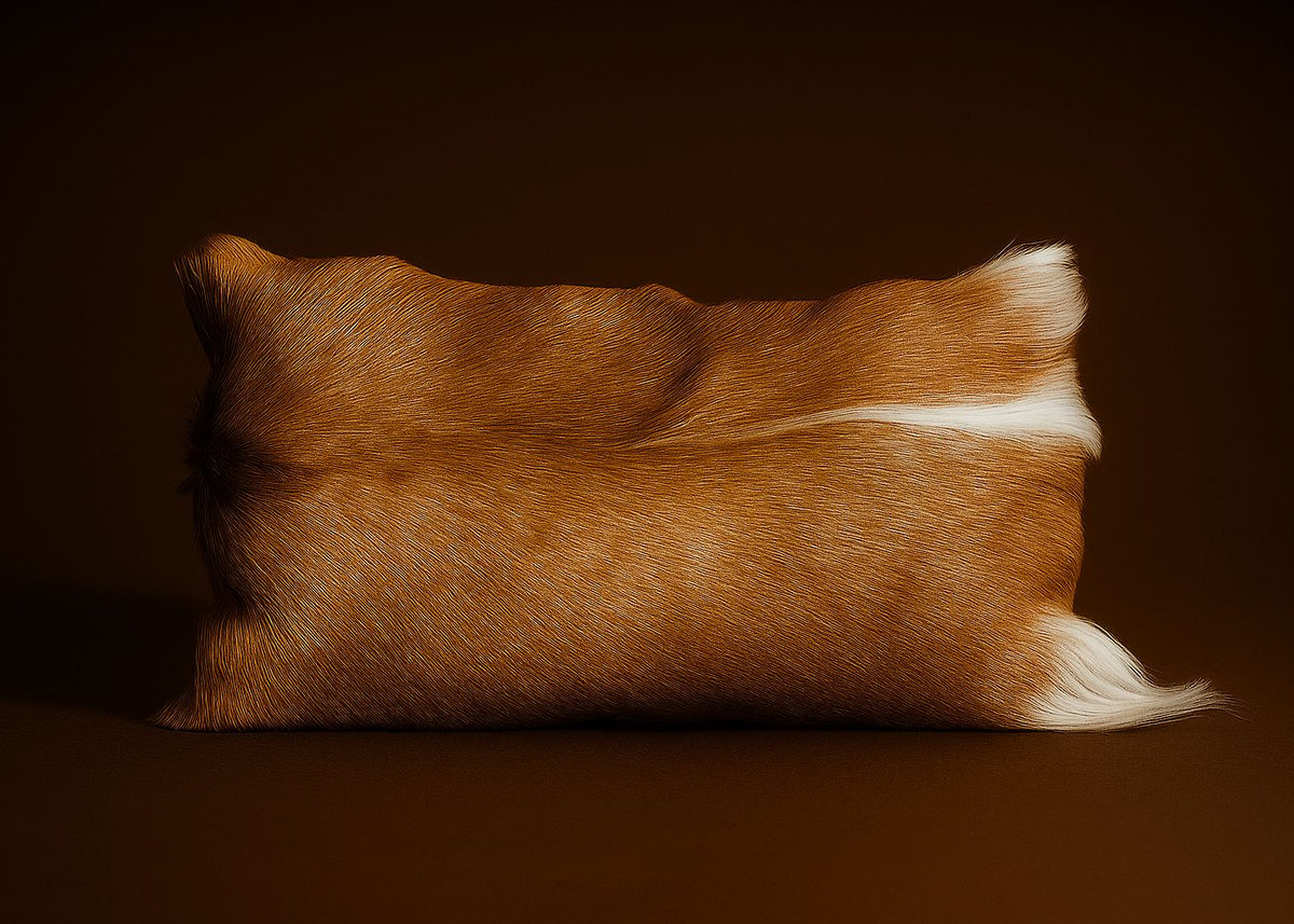 Bring warmth and elegance to your home with our Handmade Rectangular Goatskin Cushion, crafted from 100% natural goat hide.